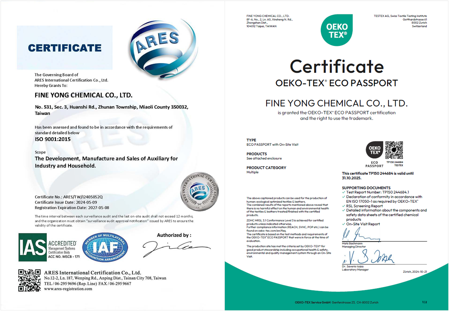 ISO 9001(品質管理) & ECO-Passport(生態驗證)